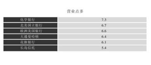 将银行的不同特性列出来“营业网点多、服务项目齐全、服务质量、资本量大、有助于长岛经济发展、方便长岛居民”,让消费者就这几项指标给各个品牌打分。