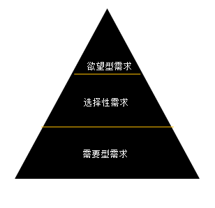 需求按照满足人们生理、心理的不同层次,可分为三层: