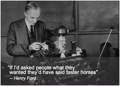还有,美国汽车行业的领头人亨利·福特曾经说过“如果我问人们想要什么,他们的答案或许是跑得更快的马。”
